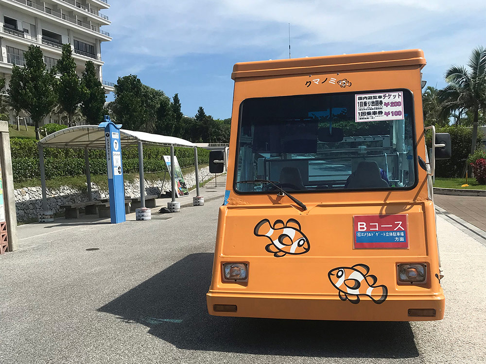 旅の情報 沖縄の新たな高速バス「沖縄エアポートシャトル」での那覇市内から沖縄美ら海水族館への日帰りプラン ◆沖縄エアポートシャトル、恩納村・美ら海水族館方面行き 「県庁北口」始発便出発時刻 8:20 ➡「記念公園前(美ら海水族館)」到着時刻 10:47 「那覇空港国内ターミナル」出発時刻 9:00 (国際線ターミナルは 9:01) ➡「記念公園前(美ら海水族館)」到着時刻 11:42 ◆沖縄エアポートシャトル、恩納村・那覇空港方面行き最終便出発時刻 「ホテルオリオンモトブリゾート&スパ」 19:00 「記念公園前(美ら海水族館)」 19:02 ➡「旭橋駅前」到着時刻 21:42 ■エメラルドビーチ 遊泳、シャワーは無料です。 有料コインロッカーもあります。 ビーチ売店で、パラソルやベッド、浮き輪、ライフジャケットなどのレンタルが可能。 ビーチバレー用具もあります。 ■沖縄美ら海水族館 営業時間: 10~2月は8:30~18:30(入館は17:30まで)、3~9月は8:30~20:00(入館は19:00まで) 入館料金(通常料金): 大人1850円、高校生1230円、小中学生610円、6歳未満無料 (時間帯などによって割引あり。ホームページでの確認をお薦めします) ホームページは日本語、英語、中国語(簡体字、繁体字)、韓国語に対応しています。 スマホでも閲覧可能で、リーフレットや館内マップ、プログラムのタイムテーブルなどのダウンロードも可能です。 https://churaumi.okinawa ■海洋博公園の移動手段 敷地は広大ですが、リフト付遊覧車(バス型)や電気遊覧車(カート型)でも移動できます。 1回乗車券は100円、1日周遊券(何度でも乗降可)は200円。園内の遊覧車遊覧ポイントで乗り降りできます。写真は電気遊覧車です。※ 以上の国営沖縄記念公園(海洋博公園)、沖縄美ら海水族館に関する情報は2018年7月現在のものです。 ※ 沖縄エアポートシャトルの発着時間は、交通事情によって前後することがあります。 ※ 記事で紹介した内容は2018年7月現在のもので、予告なく変更されることがあります。