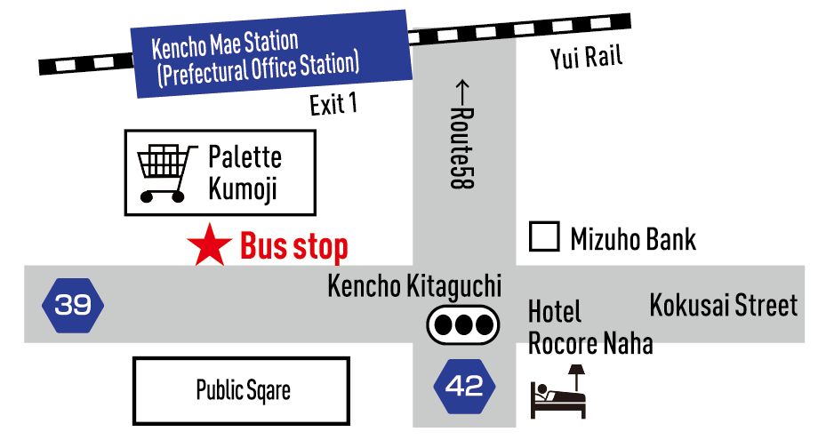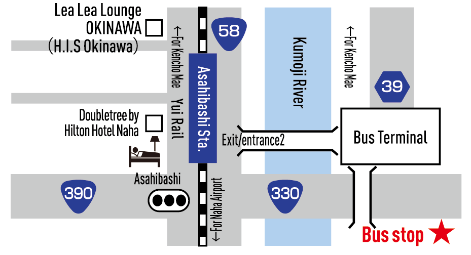 - * Shuttle Bus is not available for boarding/disembarking only within Naha City area or the route between Hanasaki Marche and Bise Fukugi Tree Road.