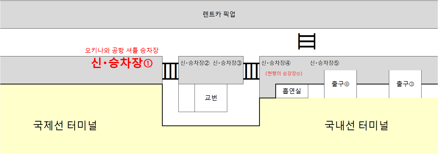 나하 공항의 버스 승강장 재편에 따라, 「오키나와 에어포트 셔틀」의 버스 승강장도