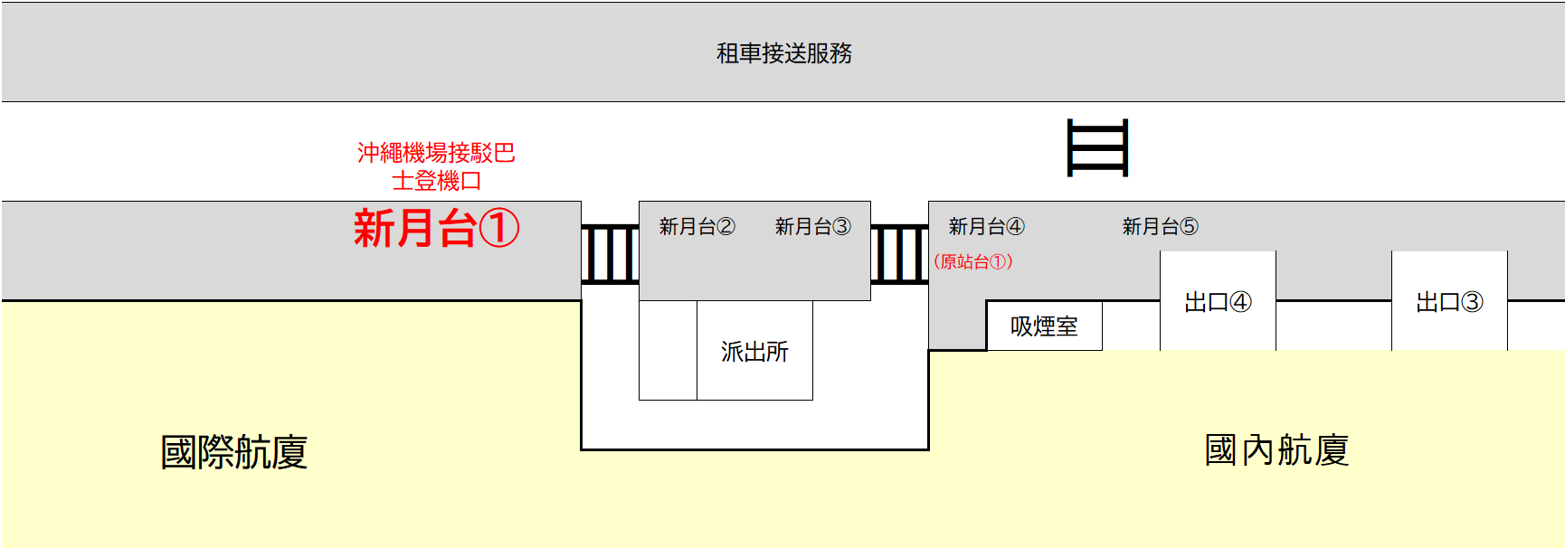 感謝您一直以來對沖繩機場巴士的惠顧。 由於那霸機場巴士月台調整,沖繩機場巴士的乘車地點也將隨之變更。